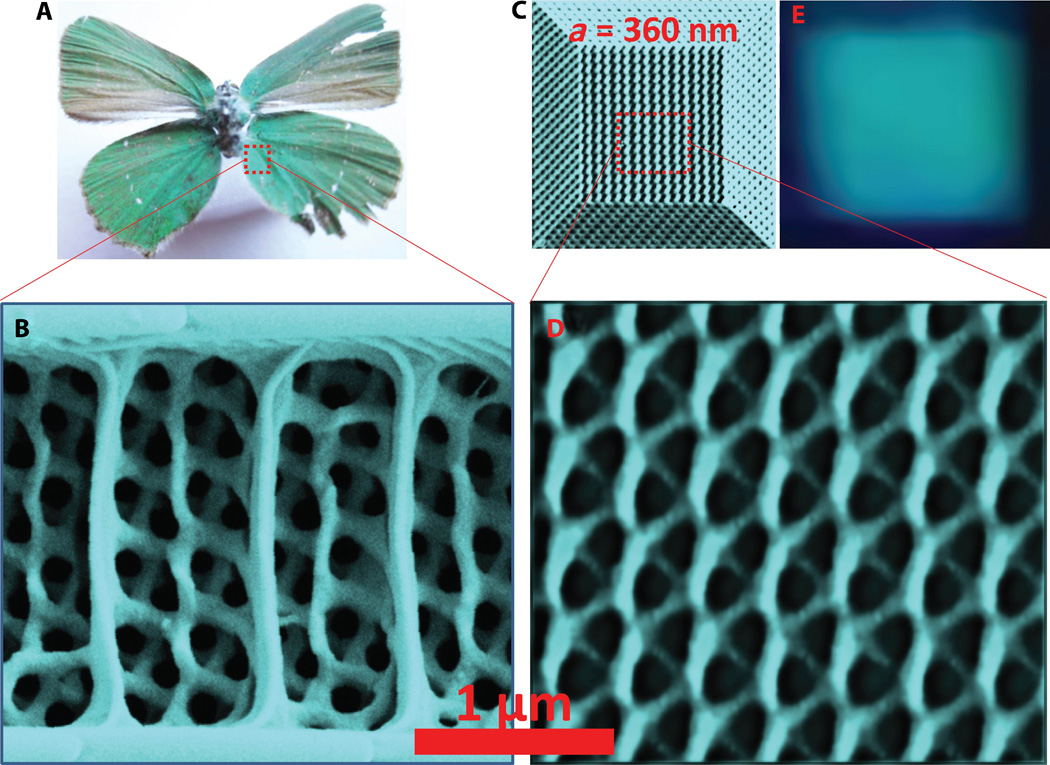 图说:蝴蝶翅膀上的天然螺旋结构(a)(b)海龟网